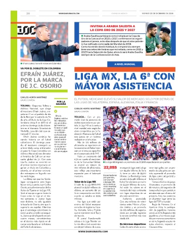 próximo domingo 22 de diciem- te histórico tido, la Liga MX es la sexta a