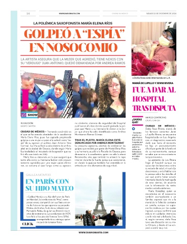 María Elena Ríos, pues fue captada propinando pillo Rivera hospitalizada en Los Ángeles