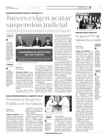 cedida en contra de la reforma más de mil 550 juzgadores fe- cia llega en un contexto de cre- lud, empleo digno y educación cia presu-