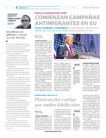 ha ganado Morena en estos diez años es un na, que podrían ver aranceles de cruzas a Texas ilegalmente, lo la- REALES Ken Salazar, embajador de EU
