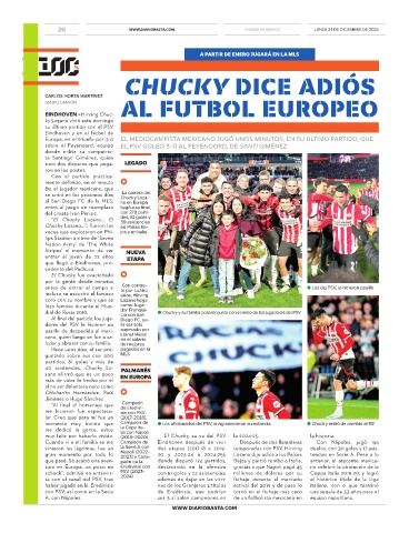 que pasé. Se acabó una aven- peón de la donde disputó 124 partidos, Bajos y partió rumbo a Italia, anterior, el atacante mexica-