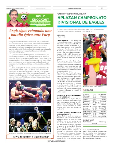 Usyk sigue reinando: una COMMANDERS SE IMPUSO 36-33 A EAGLES, EN LOS ÚLTIMOS 10