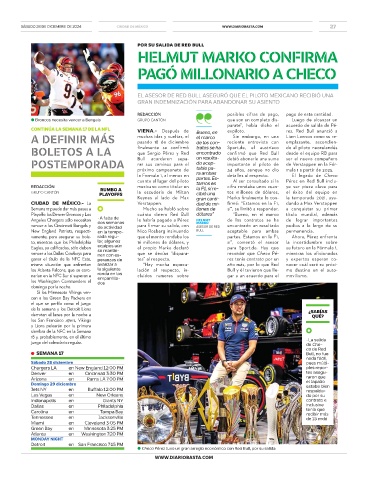 CONTINÚA LA SEMANA 17 DE LA NFL VIENA.- Después de Bueno, en expiloto. rez, Red Bull anunció a