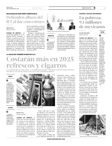 los consumidores. es un impuesto aplicable a la a 5.4513 pesos por litro. • Siguen altos índices de pobreza