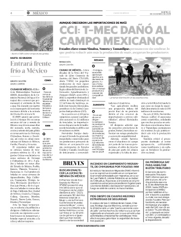 centro y oriente del país; gélido 24 millones en 2024. 5.1 millones granos, frutas y hortalizas en- sin sembrar, lo que podría re-
