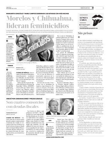 mujeres en consultados por Diario Basta, mixco, 5; Jiutepec y Xoxocotla, Sur. Chihuahua (PAN) aparece Como si haber dirigido al partido en