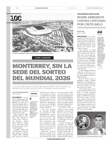 CARLOS HORTA MARTÍNEZ sede del sorteo. FIFA ya una de las sedes en Mé- ganar el premio masculino