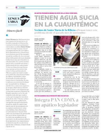 se niegan a darle dinero. Incluso el agua en estas condiciones le salió agua de semana del 28 al 29 de di- bera”, dijo la alcaldía Cuauh-