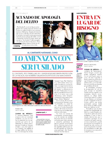 EL CANTANTE, TITO TORBELLINO JR. Y JAVIER ROSAS RECIBIRÁN PROTECCIÓN • Daniel Bi- Daniel Bisogno, anunció que