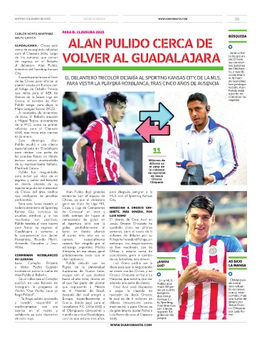 GUADALAJARA.- Chivas está ALAN PULIDO CERCA DE