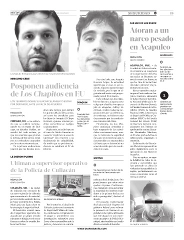 resultó del todo exitosa, ya el caso de Ovidio Guzmán se dades norteamericanas, aun- der Hernández Mendoza,