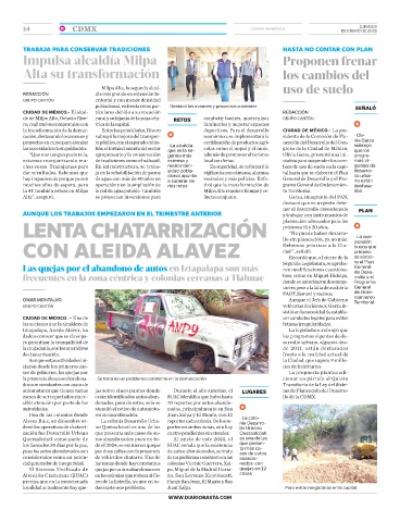 las necesidades de su población. bús, el fortalecimiento del sector • La alcaldía colas como el nopal y el mole, greso de la Ciudad de México, que los