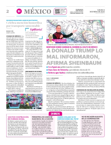 matutina, la dignataria seña- ble. En esta edición, además AFIRMA SHEINBAUM