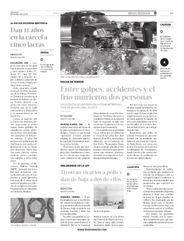 marihuana, seis porta car- tas y varios heridos. San Pedro Tlaquepaque, luego da Federalismo, a su cruce con