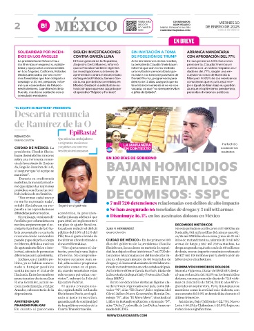 Sin embargo, versiones di- ta Sheinbaum adelantó que ● Disminuye 16.3% en los asesinatos dolosos en México