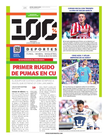24 EDITOR: CARLOS HORTA / DISEÑO GRÁFICO: CHIVAS INICIA CON TRIUNFO
