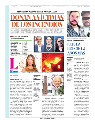 dation, que respalda a los bomberos que desplazado ● Anthony Hopkins perdió casa de 6 MDD "Por la comisión de los deli-