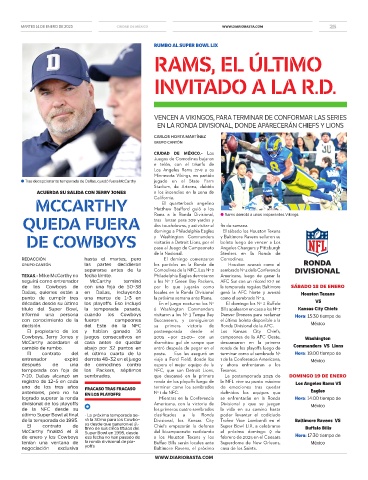 7-10. Dallas alcanzó un sembrados. que descansó en la primera La postemporada 2025 de DOMINGO 19 DE ENERO