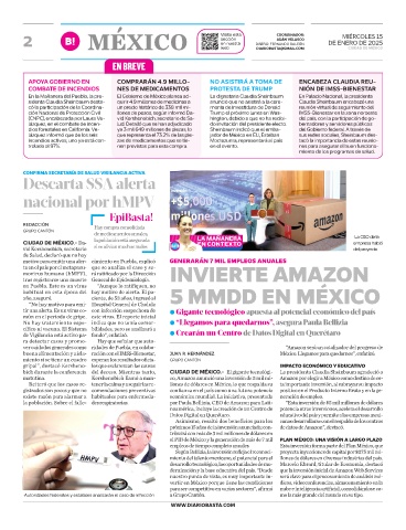 matutina. Kershenobich llamó a man- co, Amazon anunció una inversión de 5 mil mi- Amazon por elegir a México como destino de es-