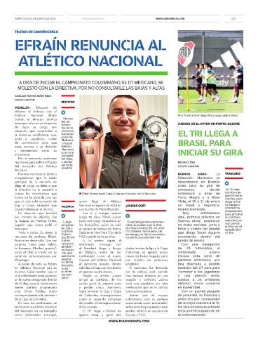 mexicano informó su intención los de- JUEVES VS EL INTER DE PORTO ALEGRE