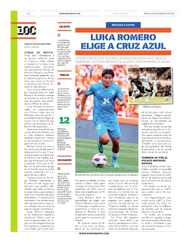 go, Romero representa a años, jugan- loni para una doble jornada ras, luego que los celestes para refuerzo en el ataque