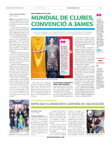 de optimismo a la afición de León. manifestó la ilusión que tiene de JAMES”: JESÚS MARTÍNEZ mente en el equipo guanajuatense. públicamen-