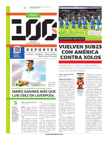 JAMES GANARÁ MÁS QUE Inter de Miami, el América Fecha: Jueves sado el club contó con ele-