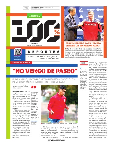 GUADALAJARA.- Alan Pu- cho y me pongo a su dispo-