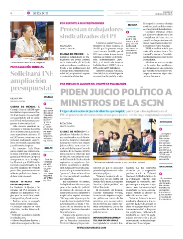 Solicitará INE Consejo de la Judicatura Fede- líder del STPJF, advirtió que de que respete sus derechos y evi-