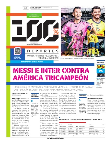 en el Estadio Allegiant, loca- • En seis jue- cuenta entre sus filas a Lio- dos a manos del Atlanta Uni- • América mexicanos, con el Barcelona