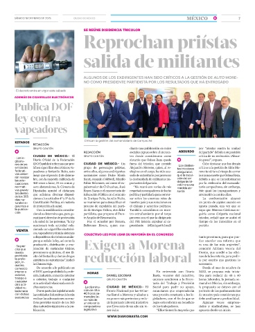 ras de las (DOF) publicó reformas que pro- CIUDAD DE MÉXICO.- Un fuera del tricolor, que preside • Los disiden- Cabe destacar que los demás