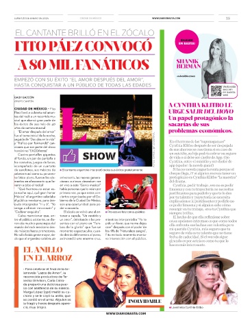 ció, muy limpio. ● La estrella Cynthia Klitbo