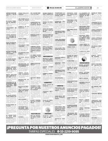 LUNES 20 DE ENERO DE 2025 CIUDAD DE MÉXICO 55.22.19.90.95 CLASIFICADOS B! 21