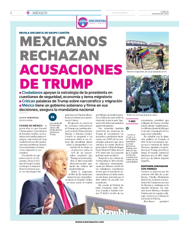 revela que la mayoría yando las críticas del canos por México, el 63% de RESPONDE SHEINBAUM