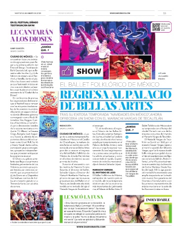 co y Sussie 4, además de ex- go de su exitosa temporada Na- do 73 años, el ballet fue fundado el Mariachi Vargas de Tecalitlán.