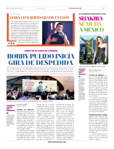 • Bobby confe- te Bobby Pulido, pues este lu- Bobby confesó que va ex- las voy a cantar también en SHAKIRA SE MUDA A CDMX