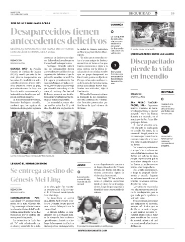 hasta violencia familiar, por gol- 13 de enero cuando sus familia- El fiscal de Oaxaca agregó que REDACCIÓN