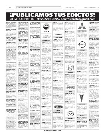 22 B! CLASIFICADOS CIUDAD DE MÉXICO JUEVES 23 DE ENERO DE 2025