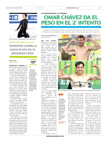 quedó en la segunda posición al llecido Por su parte, Misael ● Omar Chávez tuvo que subir dos veces a la báscula; Chino Rodríguez, sin problema