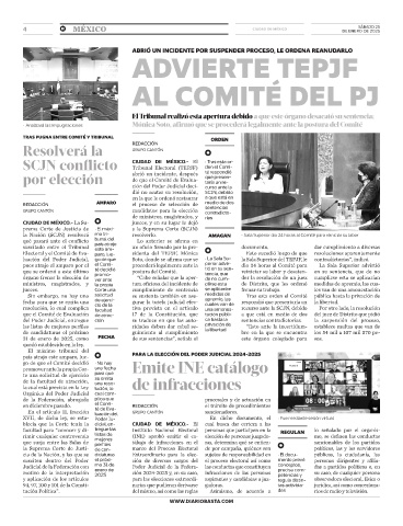 la Nación (SCJN) resolverá mo tri- resolverlo. AMAGAN • Sala Superior dio 24 horas al Comité para reiniciar su labor