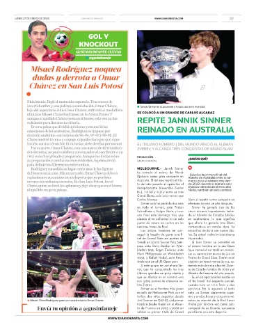 Rodríguez consolida su lugar como una de las figuras MELBOURNE.- Jannik Sinner