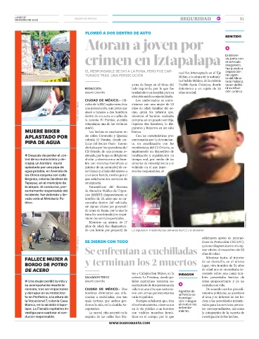● Una mujer perdió la vida y GRUPO CANTÓN licías capitalinos tomaron co- arma punzocortante y ya no