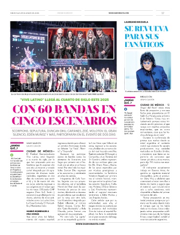 • El Vive Lati- a su cuarto de siglo, por lo alemanes de Scorpions que Dr. Cerebro, ambos regresan- tienen 40 años y otras menos,