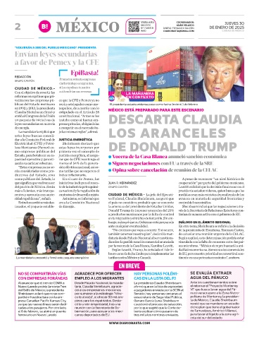 tacados, el paquete estable- de Energía. la amenaza del presidente de Estados Unidos, Sheinbaum indicó que las negociaciones a tra-