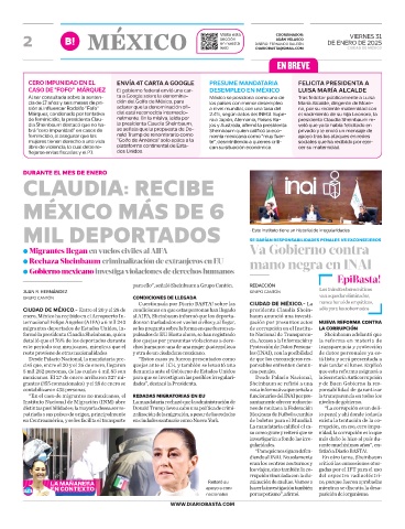 grantes (355 connacionales) y el 28 de enero se dades”, destacó la Presidenta. Sheinbaum se refirió a una y de Buen Gobierno la res-