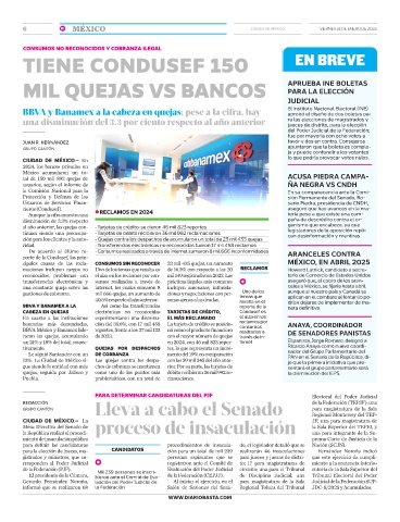 tinúan siendo una preocupa- • Tarjetas de débito recibieron 36 mil 992 reclamaciones legisladores de la oposición repli-