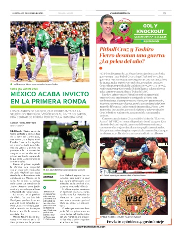 México tendrá día de des- to Rico a las con una marca de 4-0, al supe- ● Pitbull recibió el cinturón "Guerrero Azteca"