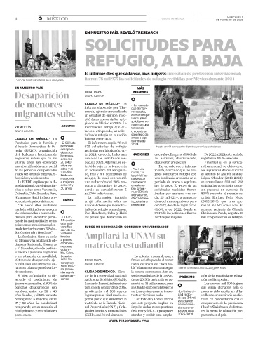 y cada vez son más mujeres, ni- tante co- do, tras 7 mil solicitudes de duras, Cu- jeres solicitaron refugio con el sexenio de Andrés Manuel