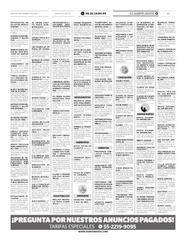 JUEVES 6 DE FEBRERO DE 2025 CIUDAD DE MÉXICO 55.22.19.90.95 CLASIFICADOS B! 21