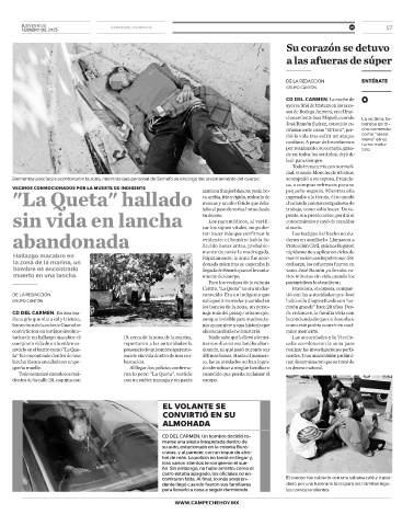 cuerpo sin vida de un hombre co- reportaron a las autoridades la nar sus días en esa lancha aban- calía acordonaron la zona para